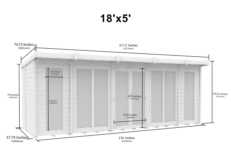 Sheds DIY - Full Height Window Pent Summerhouse - 5ft Deep - Various Size Variations Available